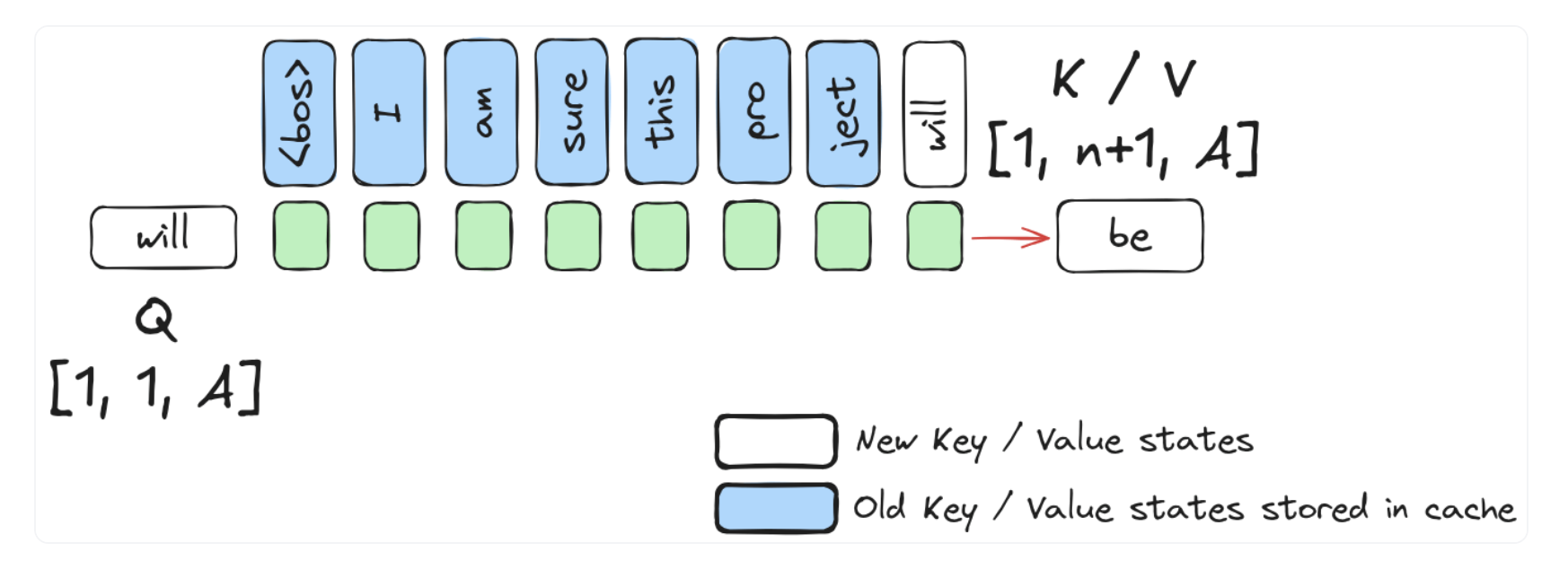 Notice how in the image above, the token be isn’t in the KV-cache yet since it was just generated. Image source